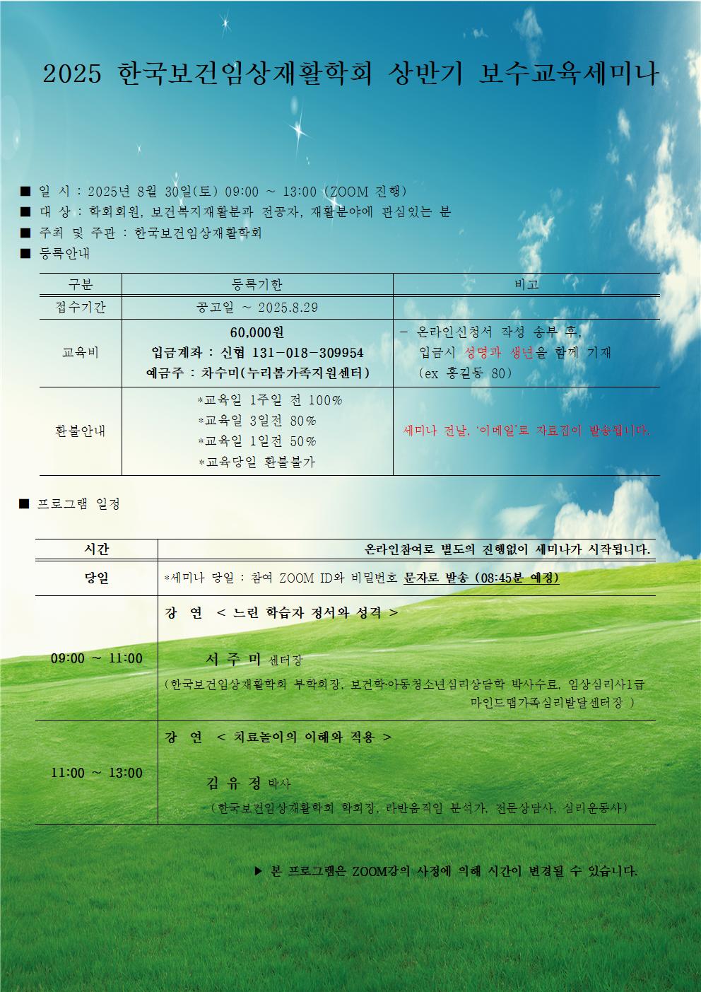 2025년 상반기 온라인 보수교육세미나를 개최하오니 회원 여러분의 많은 참여 바랍니다.